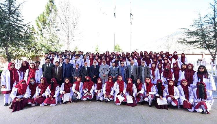 Principal Azad Jammu Kashmir Medical College Muzaffarabad, Prof Mulazim Hussain Bukhari, along with faculty members welcomed students and their families to the 12th White Coat Ceremony at the Azad Jammu Kashmir Medical College Muzaffarabad.