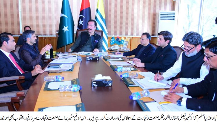 These decisions were taken during a high-level meeting chaired by Prime Minister Chaudhry Faisal Mumtaz Rathore. The meeting was attended by Advisor for Industries and Commerce Sardar Fahad Yaqoob, President of the Azad Jammu and Kashmir Chamber of Commerce Umar Shahzad Jarral, Principal Secretary to the Prime Minister Zafar Mahmood Khan, Secretary Industries Sardar Adnan Khurshid, and other senior officials.