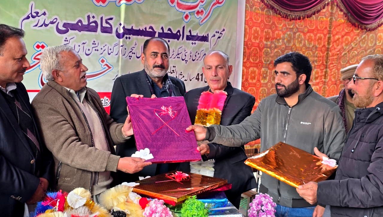 The ceremony was attended by former Municipal Magistrate Syed Sajjad Hussain Naqvi, Syed Zahoor Hussain Naqvi, Asad Naqvi, Mohsin Naqvi, political and social figures, senior officers of the Education Department, teachers, a large number of local residents, and students. On the occasion, commemorative gifts and shields were presented to Principal Syed Amjad Hussain Kazmi. The event concluded with emotional moments and prayers.