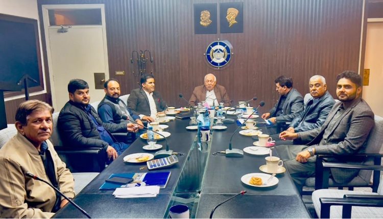 Mirpur: On the directives of Secretary Industries and Commerce Chaudhry Abdul Rehman, a delegation comprising Deputy Secretary Industries and Commerce Zaheer Mukhtar, Deputy Director Zahid Gilani and State Director Raja Kashif Latif held a meeting with Chairman Sialkot Dry Port Trust, Sheikh Naveed Iqbal.