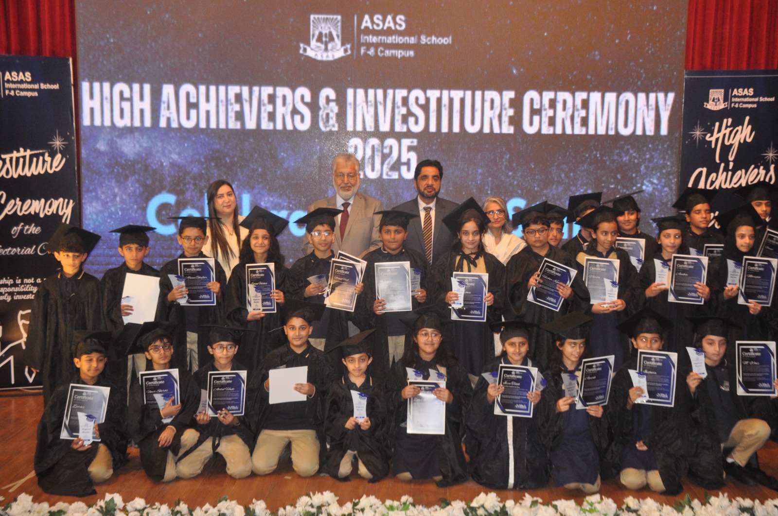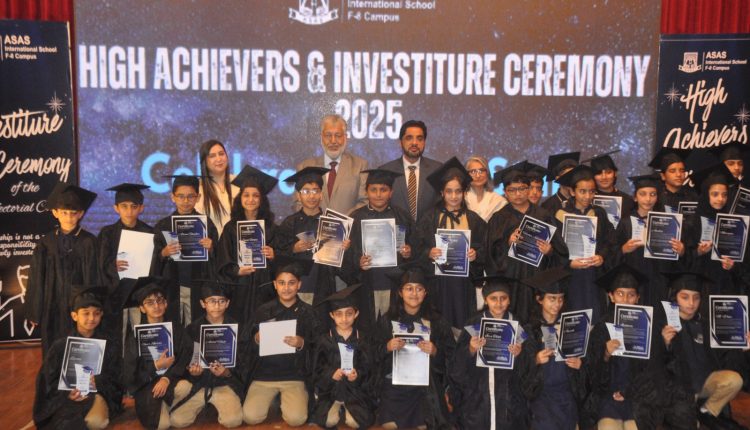 Islamabad — ASAS International School, F-8 Campus, organized its High Achievers and Investiture Ceremony to recognize academic excellence and to formally induct the newly appointed student council. The event was graced by Professor Dr. Mukhtar Ahmed, Former Chairman of the Higher Education Commission (HEC), as the Chief Guest.