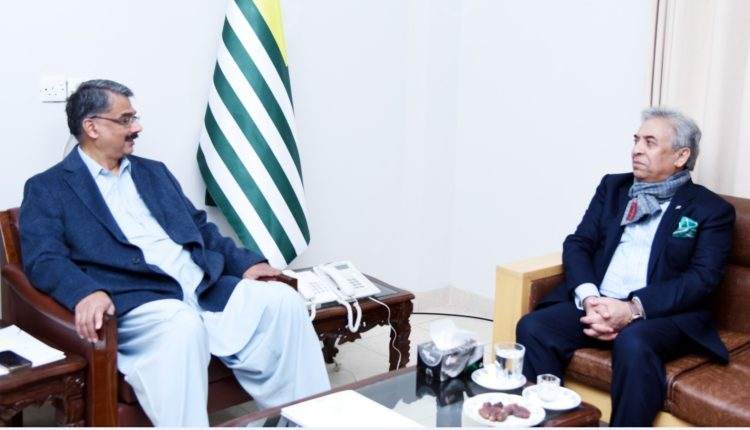 Referring to the worsening political and human rights situation in the Indian occupied territory of Jammu and Kashmir, he said, ” India has deployed 900,000 troops in Occupied Kashmir, who are involved in gross violations of human rights”.He said that India has forcible occupation the territory against the wishes and aspirations of the Kashmiri people.The PM also apprised Mr. Khan about the illegall detention of Hurriyat leaders, forced disappearances, and continued bloodshed and violence in Occupied Kashmir.He said that it was high time that the US should come forward in a big way to help resolve the Kashmir dispute, which he said was the main cause and consequence of the unrest in the region.The AJK premier, on the occasion, appreciated the role the US played in the rescue and relief operation in Azad Kashmir during the 2005 earthquake.Lauding the scholarship program offered by the US government to Kashmiri students, the Prime Minister said that it gives the students an opportunity to understand the American culture.He also appreciated the role of the American government in the development projects in Azad Kashmir under the USAID.The Prime Minister also presented a commemorative shield to the visiting guest.