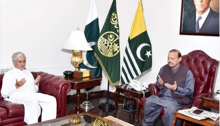 Islamabad: Former President and Prime Minister of Azad Kashmir, Sardar Muhammad Yaqoob Khan called on President of Azad Jammu and Kashmir, Barrister Sultan Mahmood Chaudhry, at the Kashmir House in Islamabad.