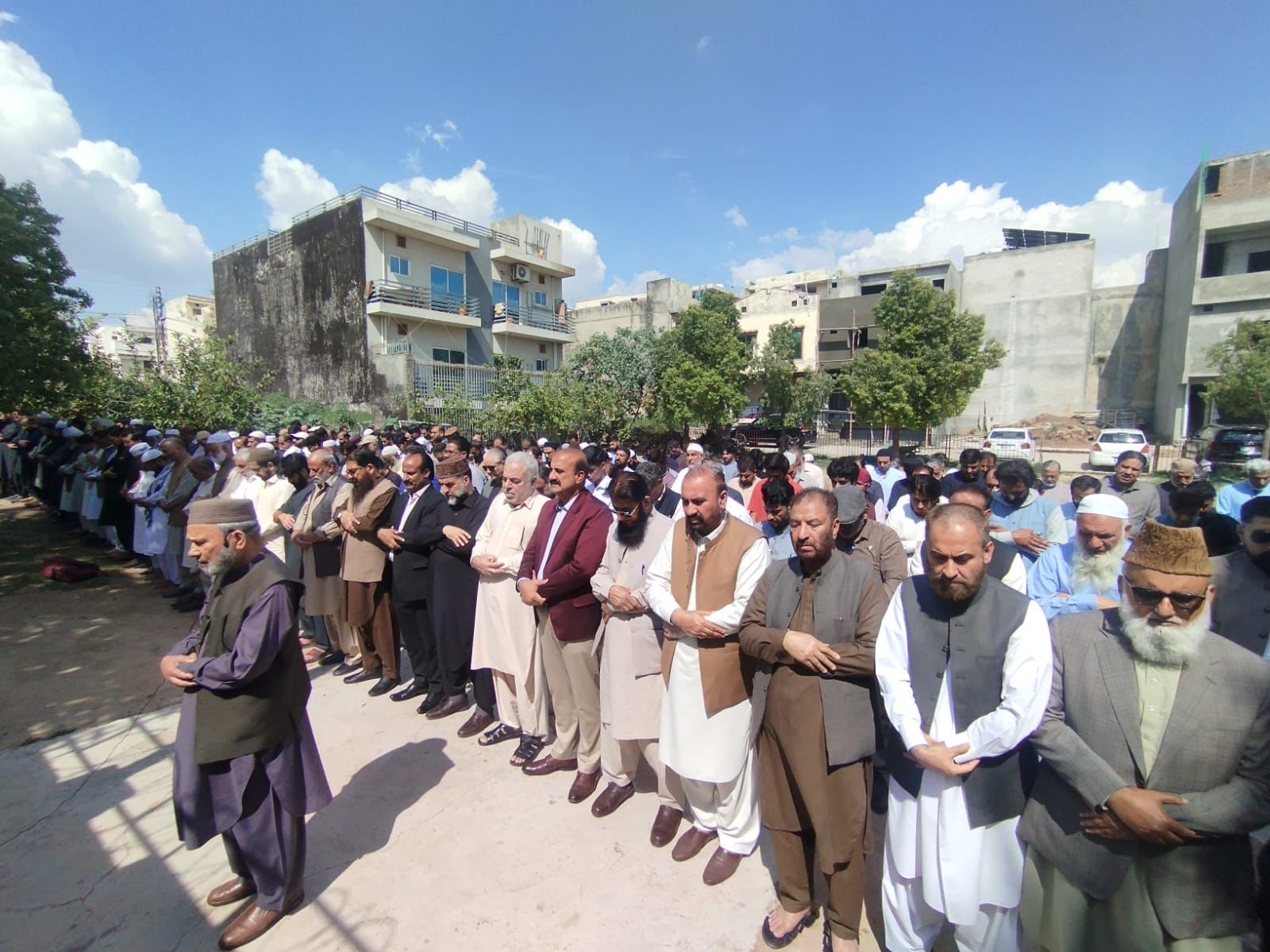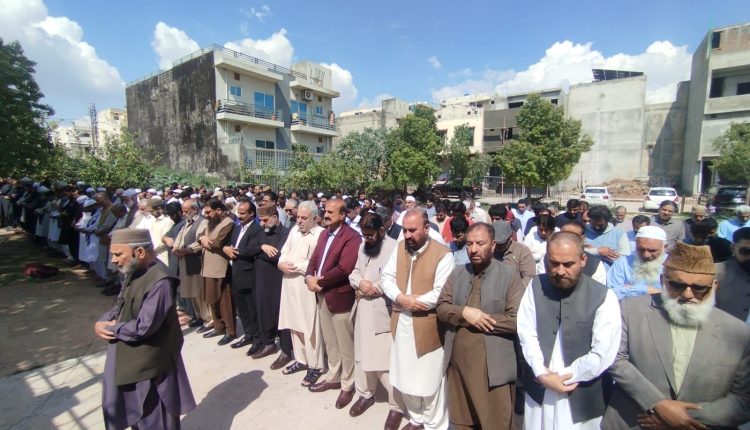 Islamabad: The funeral in absentia for the mother of senior Hurriyat leader Altaf Ahmed Butt was held in Islamabad, attended by a large gathering of political, religious, and civil society leaders, as well as members of the Kashmiri community.