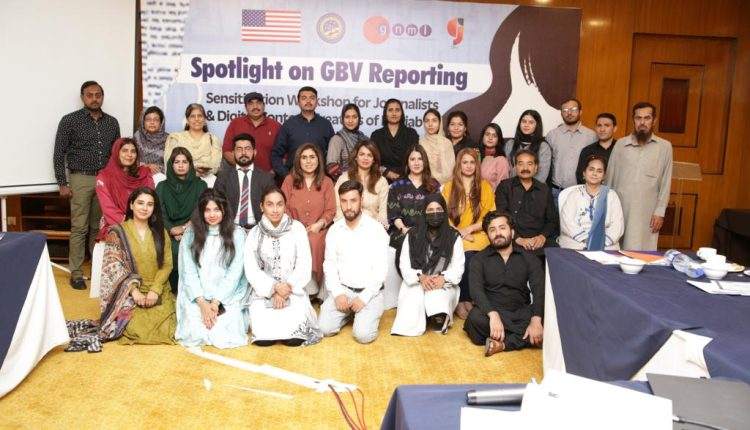 Islamabad: – The Global Neighborhood for Media Innovation (GNMI), in collaboration with the Bureau of International Narcotics and Law Enforcement Affairs (INL), has been organizing a series of workshops titled “Spotlight on GBV Reporting.” These workshops are aimed at ensuring responsible reporting of gender-based violence (GBV) and empowering journalists and digital content creators to support survivors. GNMI, a registered non-profit organization, aims to bridge the gap between media, civil society, and diverse communities through media literacy, capacity-building, and advocacy.