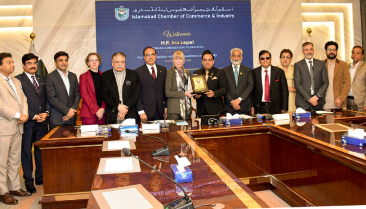Islamabad: The Ambassador of the Federal Republic of Germany to Pakistan, H.E. Ina Lepel accompanied by Ms. Janine Rohwer, Counsellor Political and Economic Affairs and Climate Change visited the Islamabad Chamber of Commerce and Industry (ICCI) and held an interactive session with the business community of Islamabad, reaffirming Germany’s strong commitment to further strengthening bilateral economic relations with Pakistan.