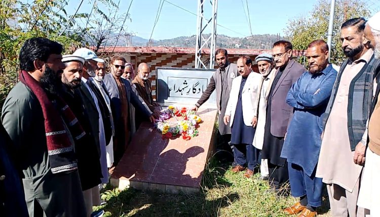 Rawalakot (Special Reporter Abid Shafait): A solemn prayer ceremony was held at the historic Darul Jihad Yadgar-e-Shuhada in Rawalakot on the occasion of Jammu Martyrs’ Day, in line with similar commemorations across the state. The event began with the laying of floral wreaths at the Yadgar-e-Shuhada, followed by prayers for the elevation of the ranks of the Jammu martyrs.