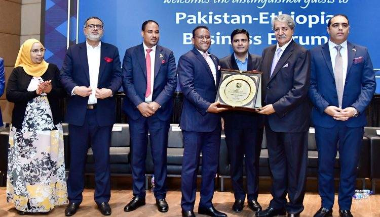 Minister of Commerce Syed Naveed Qamar presented the best ambassador award to H.E. Jemal Beker Abdula during the Ethiopia-Pakistan Business Forum.