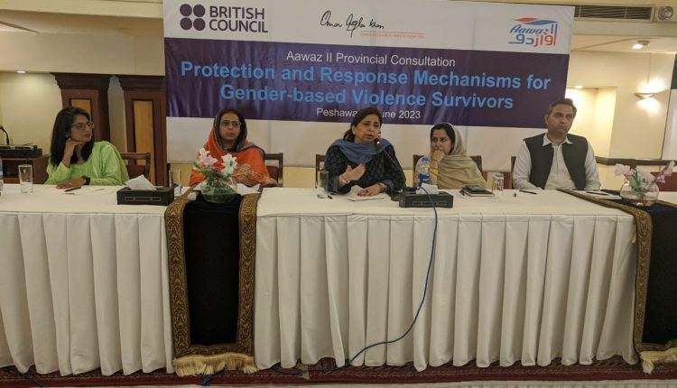 “The Government of Khyber Pakhtunkhwa is establishing facilities to help survivors of gender-based violence learn skills that will help them become more self-reliant.” This was stated by Deputy Secretary, Social Welfare & Women’s Empowerment, Ms. Warda Latif at the consultation on “Protection and Response Mechanism for Gender-Based Violence Survivors” organised by Aawaz II programme on 8 June 2023 in Peshawar.
