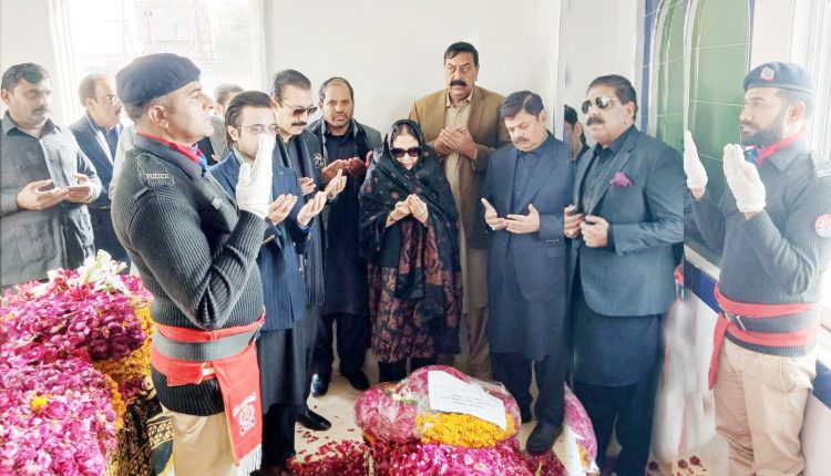 Mirpur: Prime Minister of Azad Jammu and Kashmir Faisal Mumtaz Rathore, Acting President and Speaker of the Assembly Chaudhry Latif Akbar, President PPP Women’s Wing and In-charge of PPP AJK Political Affairs Faryal Talpur, former Prime Minister of Pakistan Raja Pervez Ashraf, and PPP AJK President Chaudhry Muhammad Yaseen visited the mausoleum of late President of Azad Jammu and Kashmir Barrister Sultan Mahmood Chaudhry.