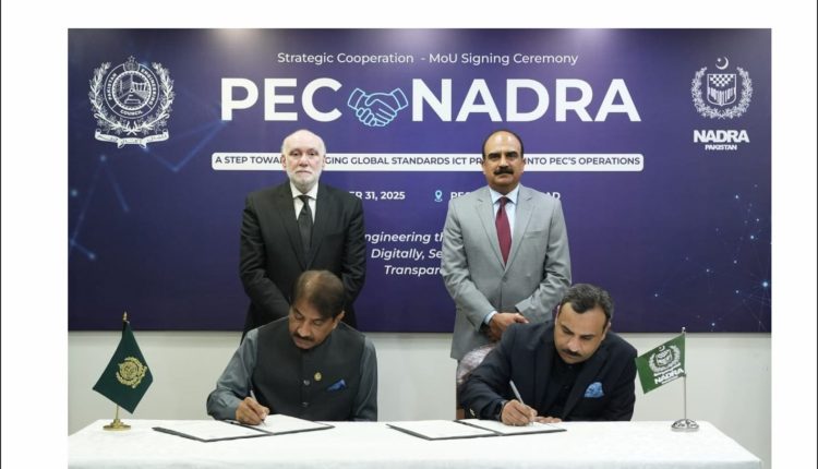 ISLAMABAD: Pakistan Engineering Council (PEC) joined hands with NADRA through signing an MoU to advance cooperation in Information and Communication Technology (ICT) development and digital transformation.
