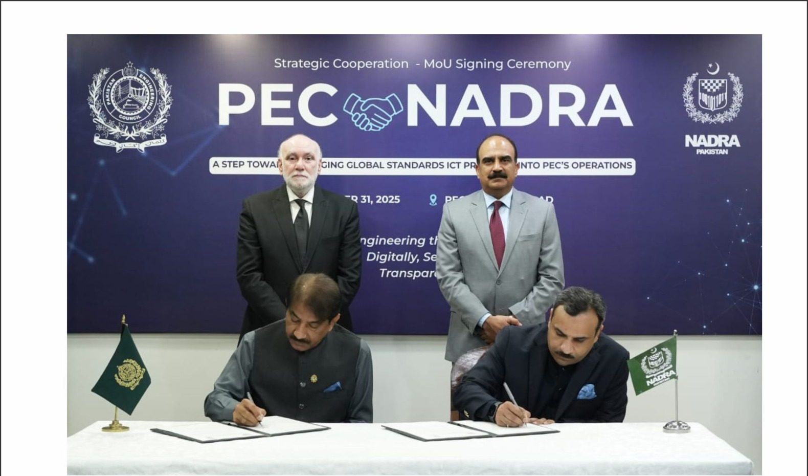 ISLAMABAD: Pakistan Engineering Council (PEC) joined hands with NADRA through signing an MoU to advance cooperation in Information and Communication Technology (ICT) development and digital transformation.