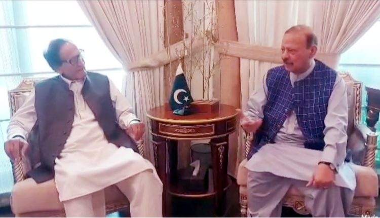 Islamabad: President Azad Jammu and Kashmir, Barrister Sultan Mahmood Chaudhry, called on the President of Pakistan Muslim League and former Prime Minister of Pakistan, Chaudhry Shujaat Hussain, in Islamabad.