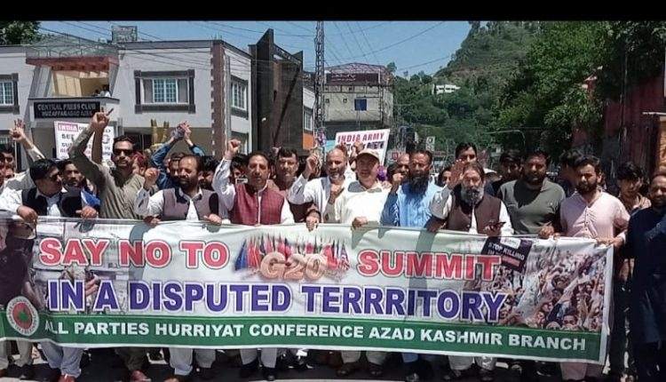 A massive protest demonstration was held and a rally was taken out in Muzaffarabad, today, against the holding of G20 meeting in Indian illegally occupied Jammu and Kashmir.