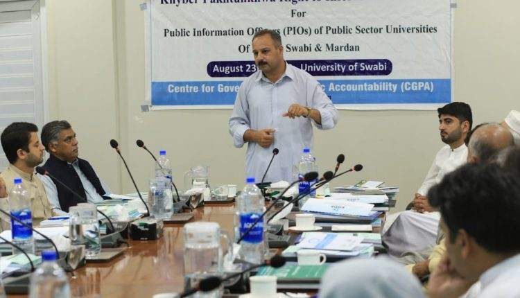 This was stated by Sayed Saadat Jahan, Deputy Director Communication, KP Information Commission while imparting training on RTI Act for the PIOs of all the universities and Principals of selected colleges of Mardan Division at University of Swabi.
