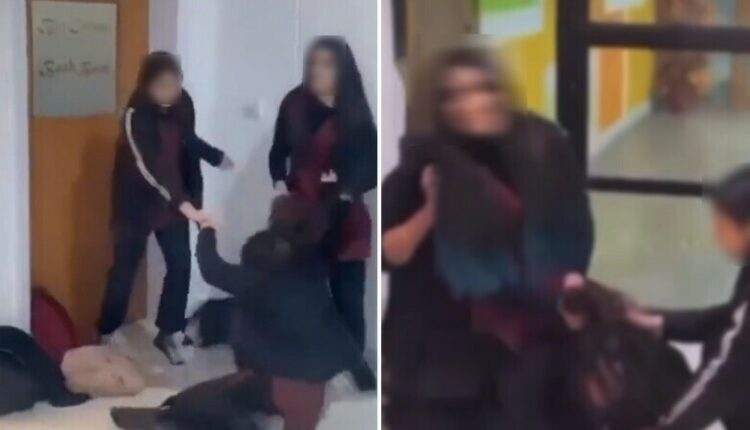 In a brief video, three to four girls are seen pulling another girl’s hair and yelling “sorry” at her. Additionally, they could be heard cursing Aliha Imran.