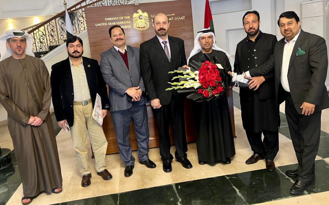 He shared these views during a meeting at the UAE Embassy with a delegation led by Syed Rahmat Ali Shah, Chairman of the Pakistan Overseas Employment Promoters Association (POEPA). The delegation included POEPA Secretary General Mumtaz Siddique, former Chairman Syed Habib Ali Shah, the Chairman’s Special Assistant Shakeel Abbasi, and Executive Member Tariq Javed.