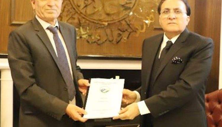 Vice Chancellor Women University Bagh Dr Abdul Hameed Peerzada presented the report to the Chief Justice Supreme Court of Azad Jammu and Kashmir Justice Raja Saeed Akram Khan.
