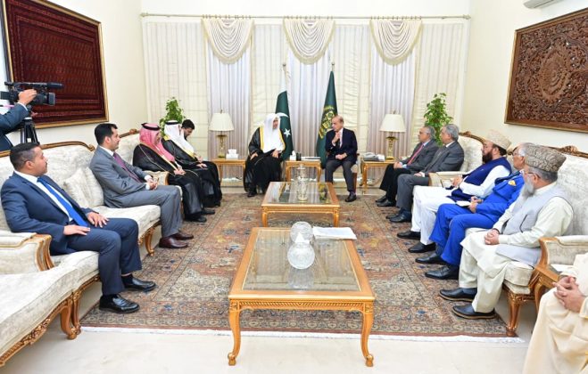 Deputy Prime Minister and Foreign Minister Ishaq Dar, Minister for Law and Justice Azam Nazeer Tarar, and the Ambassador of the Kingdom of Saudi Arabia to Pakistan, Nawaf bin Saeed Al-Malki, were also present in the meeting.